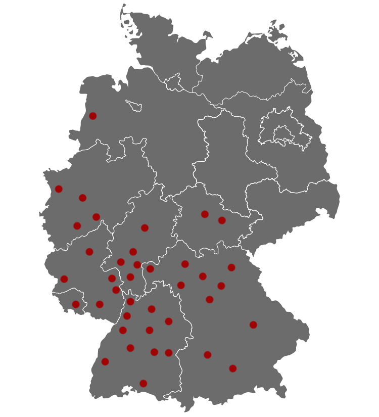 Wir sind bereits in vielen deutschen Städten aktiv und erweitern unser Angebot kontinuierlich.